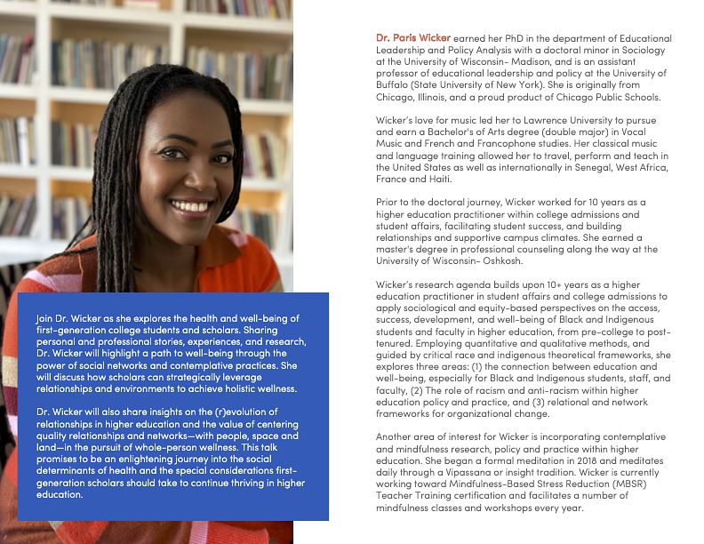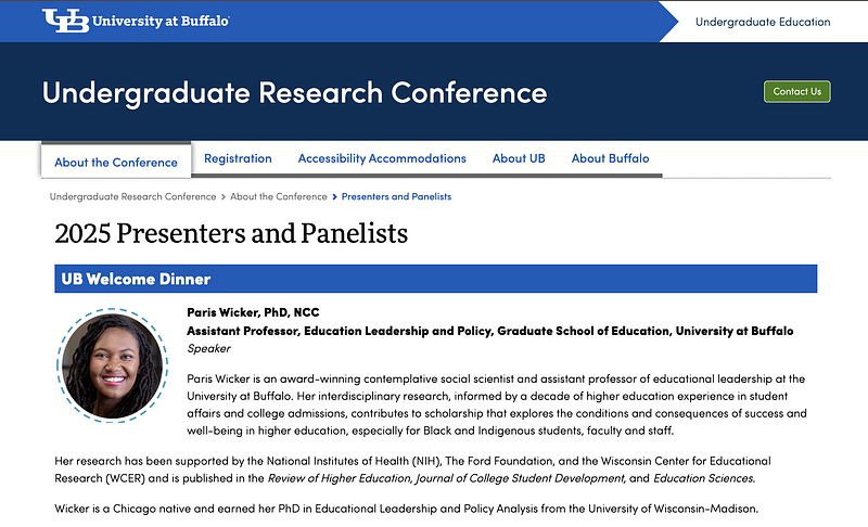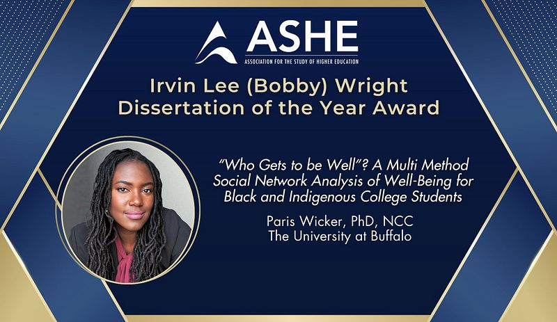 Paris Wicker has been awarded a $59,126 grant from the National Institutes of Health for her project, “Relational Determinants of Well-Being and Institutional Support for Black and Indigenous College Students.” https://ed.buffalo.edu/magazine/issues/fa... (Link)