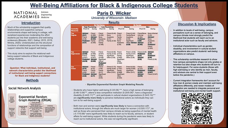 Wicker, P. D. (2024). Well-Being and support network affiliations for Black and Indigenous college students during the COVID-19 pandemic. Education Sciences, 14(8), https://doi.org/10.3390/educsci14080832