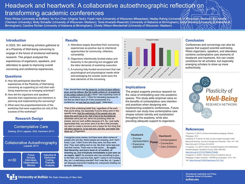 Description: The purpose of this study is to address the well-being crisis in higher education by exploring the role of community care in supporting scholars' emotional well-being. Our focus is on understanding the socialization of well-being scientists in academia, identifying key factors that contribute to the success of well-being workshops, and examining how these factors support the development of emerging scientists. We are conducting focus groups with workshop participants, organizers, and speakers to uncover common themes and experiences from the